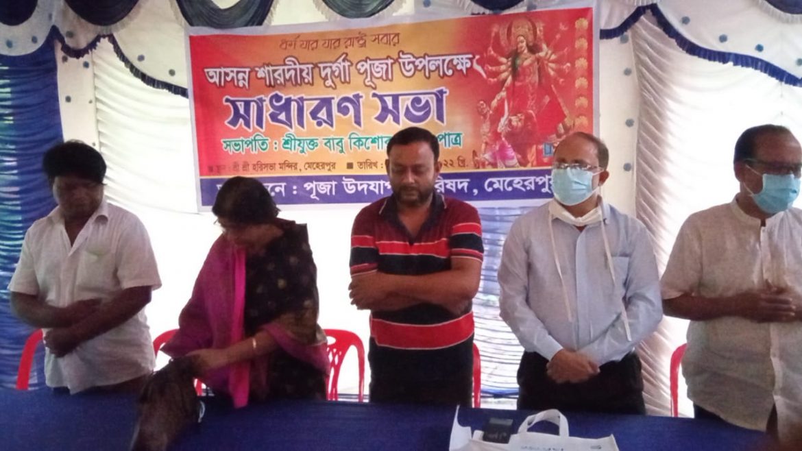 আসন্ন শারদীয় দূর্গা পূজা উদযাপন উপলক্ষে  মেহেরপুরে সাধারণ সভা অনুষ্ঠিত হয়েছে ।