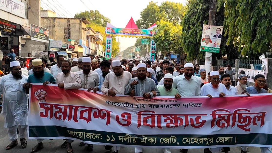 গণভোটের রায় বাস্তবায়নের দাবিতে মেহেরপুরে বিক্ষোভ মিছিল ও সমাবেশ