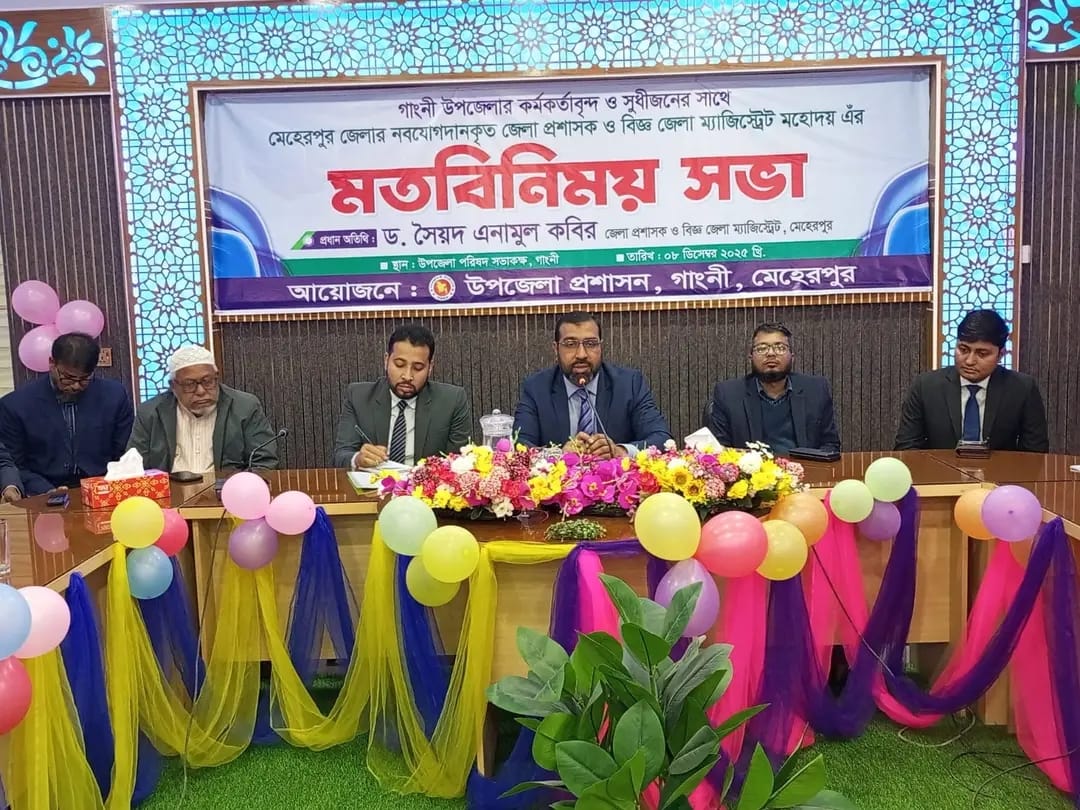 আজ সোমবার সকালে গাংনী উপজেলা পরিষদ হলরুমে মতবিনিময় সভা অনুষ্ঠিত হয়।