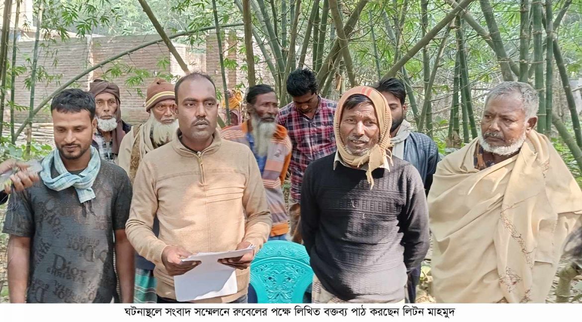 সংবাদ সম্মেলনে লিখিত বক্তব্যে রুবেল হোসেন জানান, গাংনীর চেংগাড়া গ্রামের আব্দুল হালিমের ছেলের মাসুদুর রহমানের সাথে বাঁশ বাগান সাথের জমি নিয়ে  বিরোধ চলে আসছে। আদালতে একটি মামলাও বিচারাধীন। মামলা চলমান থাকায় ওই জমিতে কেউ ভোগ দখল নিতে যান না। আমি কোদালের ডামাট করার জন্য একটি চিকন বাঁশ কেটেছিলাম, এজন্য থানায় ভুল স্বীকার করে ক্ষমা চাওয়ার পরেও এস আই আতিকুর রহমান আমার নামে  মিথ্যা ৬০ টি বাঁশ কাটাসহ ১ লক্ষ টাকার তসরুপাত করার মামলায় অভিযুক্ত করেছে। মামলায় একজনকে নামীয় ও অজ্ঞাত আরো ৪/৫ জনকে আসামী করা হয়েছে।