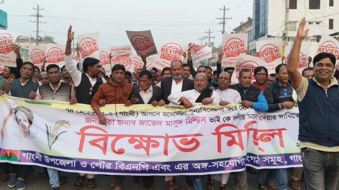 গাংনীতে মনোনয়ন পরিবর্তনের দাবিতে বিক্ষোভ মিছিল