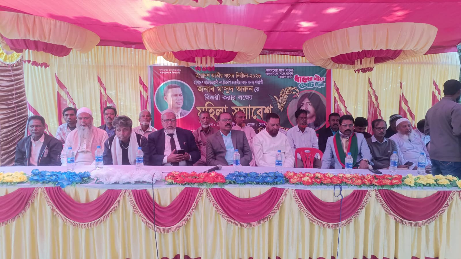 ত্রয়োদশ জাতীয় সংসদ নির্বাচনের প্রেক্ষাপটে মেহেরপুরের মুজিবনগর উপজেলার মহাজনপুর ইউনিয়নে বাংলাদেশ জাতীয়তাবাদী দল (বিএনপি) আয়োজিত মহিলা সমাবেশ অনুষ্ঠিত হয়েছে। সমাবেশের মাধ্যমে বিএনপি মনোনীত সংসদ সদস্য পদপ্রার্থী মাসুদ অরুণকে বিজয়ী করার লক্ষ্যে নারীদের মধ্যে নির্বাচনী প্রচারণা ও সচেতনতা বৃদ্ধি করা হয়।