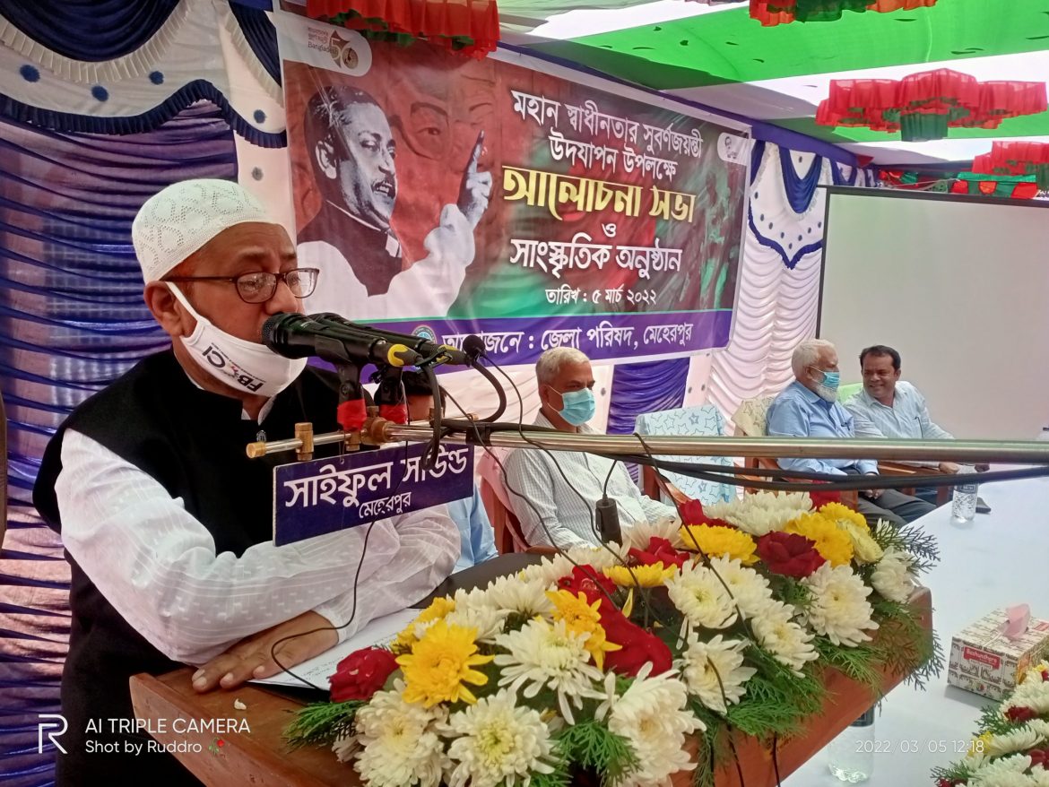 মহান স্বাধীনতার সুবর্ণজয়ন্তী উদযাপন উপলক্ষে মেহেরপুর জেলা পরিষদের উদ্যেোগে আলোচনা সভা অনুষ্ঠিত হয়েছে।