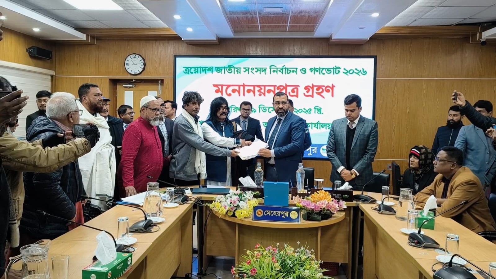 • মেহেরপুরের দুই আসনে বিএনপি-জামায়াতসহ ১২ প্রার্থীর মনোনয়নপত্র দাখিল