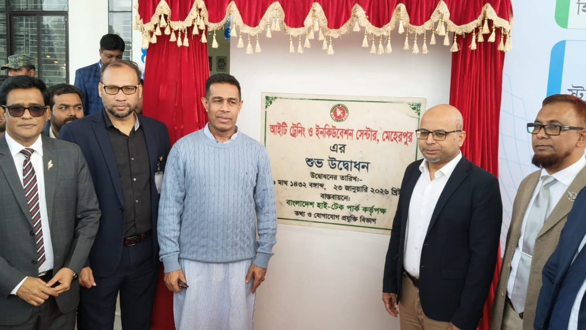 তথ্য ও যোগাযোগ প্রযুক্তি খাতে দক্ষ মানবসম্পদ তৈরির লক্ষ্যে মেহেরপুরে আইটি ট্রেনিং ও ইনকিউবেশন সেন্টারের উদ্বোধন করা হয়েছে।