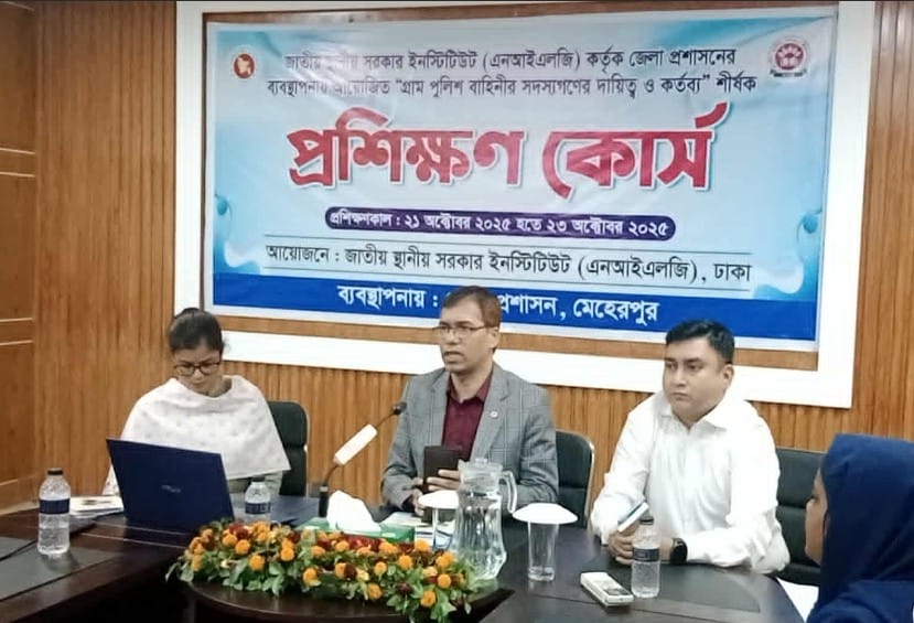 জাতীয় স্থানীয় সরকার ইনস্টিটিউট (এনআইএলজি)-এর উদ্যোগে এবং জেলা প্রশাসনের ব্যবস্থাপনায় মেহেরপুর জেলা প্রশাসকের সম্মেলন কক্ষে গ্রাম পুলিশ বাহিনীর সদস্যদের “দায়িত্ব ও কর্তব্য” শীর্ষক প্রশিক্ষণ কোর্সের দ্বিতীয় দিনের কার্যক্রম অনুষ্ঠিত হয়েছে।