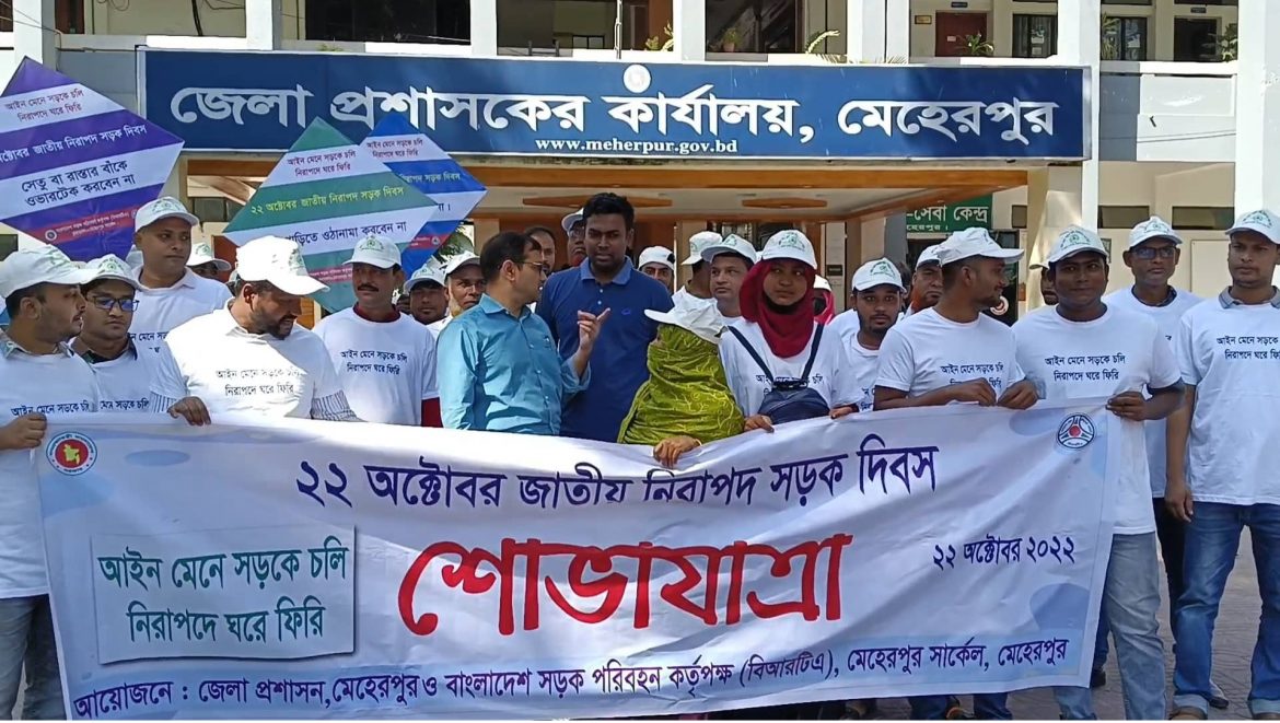 মেহেরপুরে জেলা প্রশাসন ও বিআরটিএ এর উদ্যোগে জাতীয় নিরাপদ সড়ক দিবস পালন করা হয়েছে। শনিবার সকালে এ উপলক্ষে একটি র্যালী বের করা হয়। অতিরিক্ত জেলা প্রশাসক আশরাফুজ্জামান ভূঁইয়ার নেতৃত্ব র্যালীটি জেলা প্রশাসনের কার্যলয় থেকে শুরু করে শহরের প্রধান প্রধান সড়ক প্রদক্ষিণ শেষে একই স্থানে গিয়ে শেষ হয়। পরে জেলা প্রশাসকের সম্মেলন কক্ষে আলোচনা সভা অনুষ্ঠিত হয়।