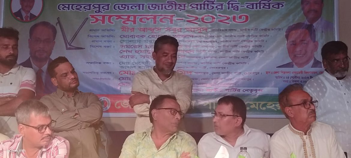 মেহেরপুর জেলা জতীয় পাটির দিবার্ষিক সম্মেলন-২৩ অনুষ্ঠিত হয়েছে । আজ সোমবার বিকাল ৪টায় মেহেরপুর জেলা শিল্পকলা একাডেমি ভবনে এয় সম্মেলন অনুষ্ঠিত হয় ।