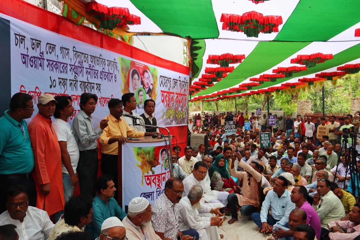 মেহেরপুরে চাল-ডাল, তেল-গ্যাস-বিদ্যুতের অস্বাভাবিক মূল্যবৃদ্ধি ও আওয়ামী লীগ সরকারে সর্বগ্রাসী দুর্নীতির প্রতিবাদে এবং বিএনপি’র ১০ দফা বাস্তবায়নের দাবিতে বিক্ষোভ অবস্থান কর্মসূচি অনুষ্ঠিত হয়েছে।