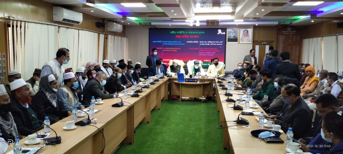 মেহেরপুরে ধর্মীয় সম্প্রীতি ও সচেতনামূলক আন্তঃধর্মীয় সংলাপ অনুষ্ঠিত হয়েছে। সোমবার বেলা সাড়ে ১১ টার দিকে জেলা প্রশাসক সম্মেলন কক্ষে অনুষ্ঠানে সভাপতিত্ব করেন জেলা প্রশাসক ড মুনসুর আলম খান। প্রধান অতিথি হিসেবে উপস্থিত ছিলেন জনপ্রশাসন প্রতিমন্ত্রী ও মেহেরপুর জেলা আওয়ামী লীগের সভাপতি ফরহাদ হোসেন এমপি। অতিথি হিসাবে উপস্থিত ছিলেন ধর্ম বিষয়ক মন্ত্রণালয়ের প্রতিমন্ত্রীর ফরিদুল হক খান এমপি। বিশেষ অতিথি হিসেবে উপস্থিত ছিলেন মেহেরপুর-২ (গাংনী) আসনের সংসদ সদস্য সাহিদুজ্জামান খোকন, পুলিশ সুপার রাফিউল আলম। অনুষ্ঠানে অন্যদেও মধ্যে উপস্থিত ছিলেন জেলা পরিষদের চেয়ারম্যান আলহাজ্ব গোলাম রসুল, সদর উপজেলা চেয়ারম্যান অ্যাডভোকেট ইয়ারুল ইসলাম, জেলা জজ কোর্টের পিপি পল্লব ভট্টাচার্য, জেলা কৃষি অধিদপ্তরের উপ-পরিচালক স্বপন কুমার খাঁসহ জেলার বিভিন্ন মসজিদের ইমাম, মন্দিরের পুরোহিত ও সরকারি-বেসরকারি কর্মকর্তারা।