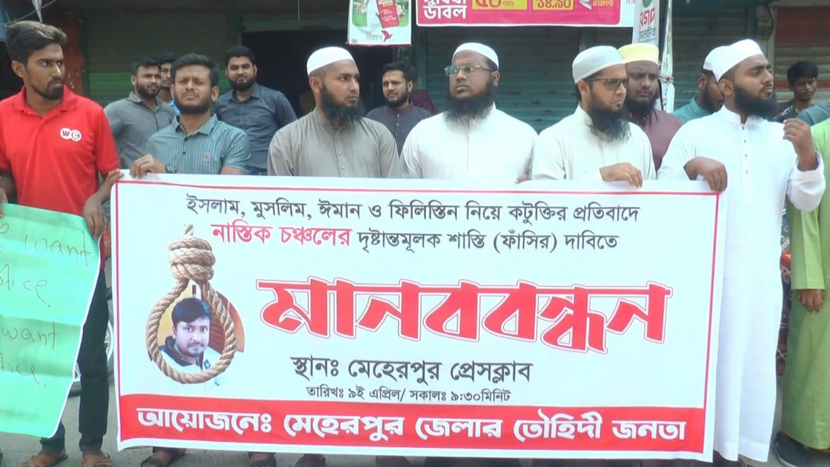 মেহেরপুরে নাস্তিক চঞ্চলের দৃষ্টান্ত মুলক শাস্তির দাবিতে মানববন্ধন