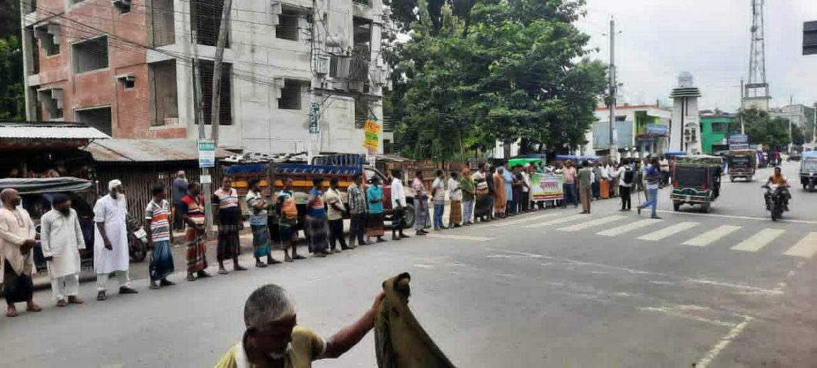 মেহেরপুরে ফসলি জমির পানি নিষ্কাশনের দাবিতে মানববন্ধন