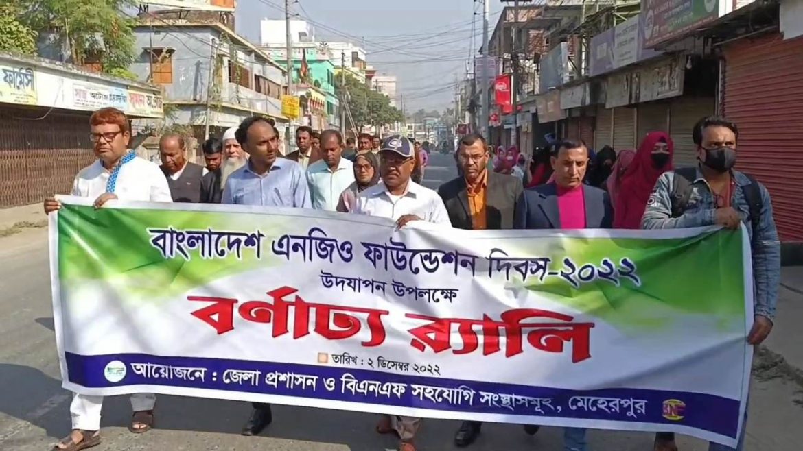 মেহেরপুরে প্রশাসনের আয়োজনে র‍্যালী ও আলোচনা সভার মধ্য দিয়ে বাংলাদেশ এনজিও ফাউন্ডেশন দিবস পালন করা হয়েছে।