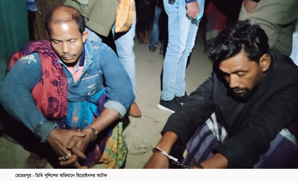 মেহেরপুর ডিবি পুলিশ জানান আজ মঙ্গলবার (৭ ফেব্রুয়ারী) সকালে মেহেরপুর সদও উপজেলার কামদেবপুর গ্রাম থেকে তাদের আটক করা হয়। এ সময় তাদের কাছ থেকে ১৫০ গ্রাম হেরোইন উদ্ধার করা হয়। উদ্ধাকৃত হেরোইনের মূল্য প্রায় ১৫ লাখ টাকা।