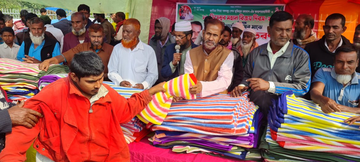 মেহেরপুরে জাতির জনক বঙ্গবন্ধু শেখ মুজিবুর রহমানের জন্মশত বার্ষিকী ও মহান বিজয় দিবস উপলক্ষে ১৫ গ্রামের ২২ শ দুস্থ শীতার্ত মানুষের মাঝে কম্বল বিতরণ করা হয়েছে। বৃহস্পতিবার বেলা সাড়ে ১১ টার দিকে নবগঠিত বারাদি ইউনিয়নের তিনবারের ইউপি সদস্য ও সদর উপজেলা আওয়ামী লীগের সদস্য আরমান আলীর নিজ অর্থায়নে রাজনগর গ্রামে প্রাইমারি স্কুল মাঠে এ কম্বল বিতরণ করেন।