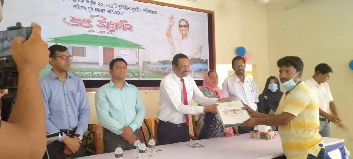 জেলা প্রশাসক ড. মোহাম্মদ মুনসুর আলম খান উপস্থিত থেকে মুজিবনগর উপজেলা ভূমিহীনদের মাঝে ভূমি ও ঘর প্রদান করেন। এ সময় মুজিবনগর উপজেলা নির্বাহী অফিসার সুজন সরকার উপস্থিত ছিলেন। অপর দিকে স্থানীয়সরকার বিভাগের উপ-পরিচালক মৃধা মোহাম্মদ মোজাহিদুল ইসলাম উপস্থিত থেকে মেহেরপুর সদর উপজেলা ৮৪ জন ভূমিহীনদের মাঝে ভুমি ও ঘর প্রদান করেন। এ সময় সদর উপজেলা পরিষদের চেয়ারম্যান অ্যাডভোকেট ইয়ারুল ইসলাম, সদর উপজেলা নির্বাহী অফিসার আসাদুজ্জামান রিপন, সদর উপজেলা পরিষদের মহিলা ভাইস চেয়ারম্যান লতিফুন্নেছা লতা, সদর উপজেলা যুব উন্নয়ন কর্মকর্তা বিপ্লব কুমার কুন্ডু প্রমূখ উপস্থিত ছিলেন।