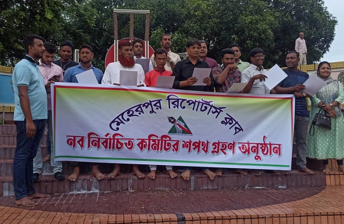 মেহেরপুর রিপোর্টার্স ক্লাবের নবনির্বাচিত পরিষদের শপথ গ্রহন অনুষ্ঠিত