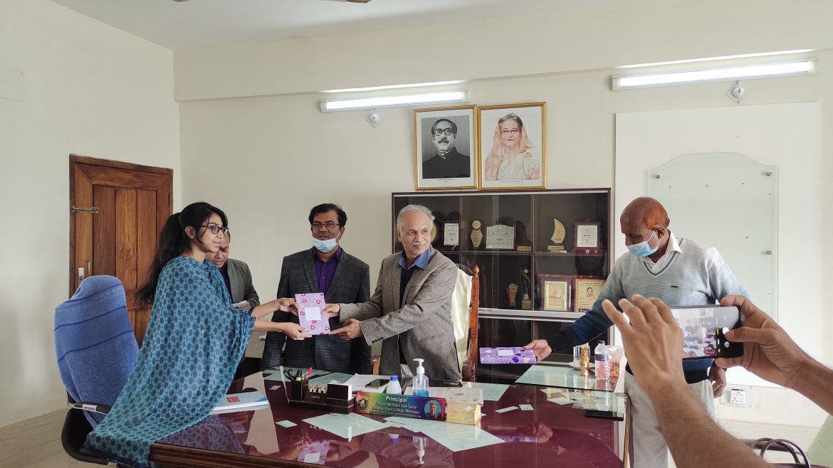 মেহেরপুর সরকারি কলেজের মহান বিজয় দিবসের সুবর্ণ জয়ন্তি উপলক্ষে রচনা ও আবৃত্তি প্রতিযোগিতায় বিজয়ীদের মাঝে পুরুস্কার বিতরণ করা হয়ছে।