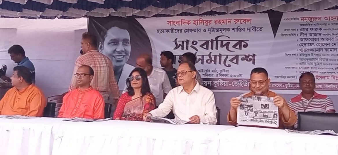 সাংবাদিক হাসিবুর রহমান রুবেল হত্যাকারীদের গ্রেপ্তার ও দৃষ্টান্তমুলক শাস্তির দাবিতে কুষ্টিয়ায় সাংবাদিকদের মহাসমাবেশ হয়েছে ।
