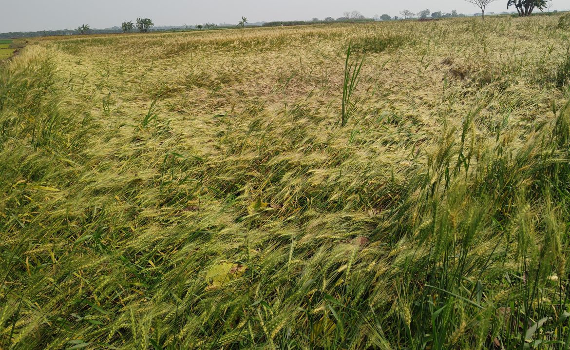 শিলা বৃষ্টি আর ভারি বাতাসে মেহেরপুরে গমের ব্যাপক ক্ষতি হয়েছে। আধাপাকা গম অধিকাংশ মাঠেই মাটির সাথে শুয়ে পড়েছে। এতে চলতি মৌসুমে গমের মারাত্মক ফলন বিপর্যয়ের আশঙ্কা করছে চাষিরা। চলতি মাসেই দইুবার লাগাতার বৃষ্টিতে শুধু গমই নয়, ক্ষতির মুখে পড়েছে ভুট্টা, মশুরি, কলা, সবজিসহ বিভিন্ন রবি ফসল। বারি-৩১, বারি-৩২, বারি-৩৩ রোগ প্রতিরোধী ও জিংক সমৃদ্ধ উচ্চফলনশীল নতুন জাতের গমে এবার ভালো ফলন আশা করছিল কৃষক ও কৃষিবিভাগ। ব্লাস্ট রোগ প্রতিরোধী নতুন জাতের গম চাষ করে আশার আলো দেখছিল জেলার কৃষকরা।