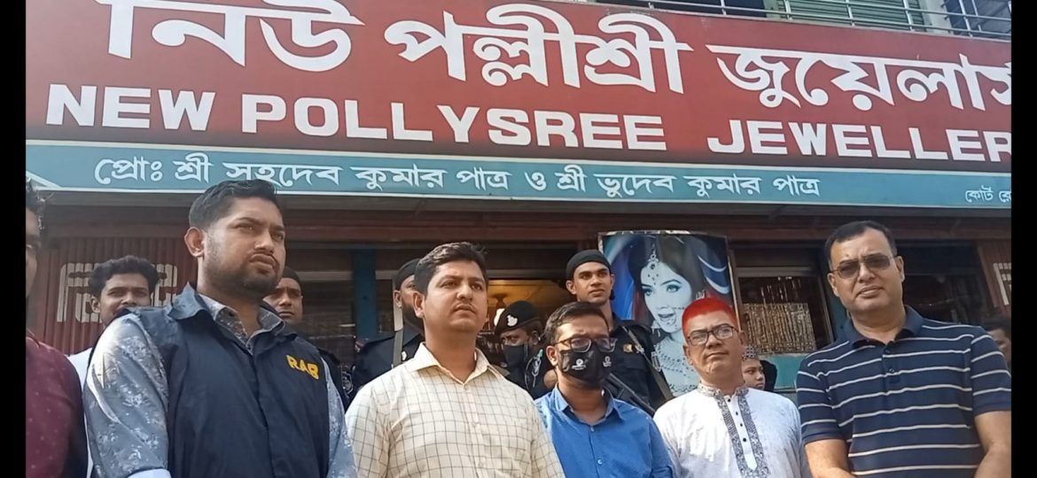 মেহেরপুর জাতীয় ভোক্তা অধিকার সংরক্ষণ অধিদপ্তর ও মেহেরপুর র্যাব-১২ এর যৌথ অভিযানে মেহেরপুর শহরের ভ্রাম্যমান অভিযান পরিচালনা করে নিউ পল্লীশ্রী জুয়েলার্সের ৪০ হাজার টাকা জরিমানা আদায় করেছে। আজ মঙ্গলবার দুপুরে মেহেরপুর ভোক্তা অধিকার কার্যালয়ের পরিচালক সজল আহমেদ এ অভিযান পরিচালনা করেন।
