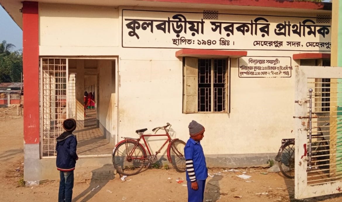 মেহেরপুর সদর উপজেলার কুলবাড়িয়া সরকারি প্রাথমিক বিদ্যালয়ের সহকারী শিক্ষিকা শেফালী পারভিন বিদ্যালয়ের দুটি কক্ষ দখল করে চতুর্থ ও ৫ শ্রেনীর ৪০/৫০ জন শিক্ষথীদের প্রাইভেট পড়াচ্ছেন। এসময় বিদ্যালয়ের বাইরে অপেক্ষা করতে দেখা যায় নিয়মিত বিদ্যালয়ে আসা কমলমতি শিশুদের। বিদ্যালয়ের প্রধান শিক্ষক ও উপজেলা প্রাথমিক শিক্ষা অফিসার জানান এধরনের প্রাইভেট পড়ানো সম্পূর্ণ আইন বিরোধী ও শাস্তি যোগ্য অপরাধ। তবে সহকারী শিক্ষিকা শেফালী পারভিনের দাবি তিনি শিক্ষামন্ত্রীর অনুমতি নিয়ে বিদ্যলয়ে প্রাইভেট পড়াচ্ছেন।